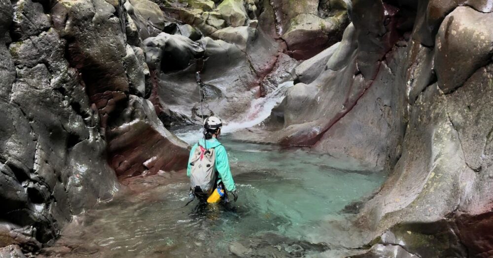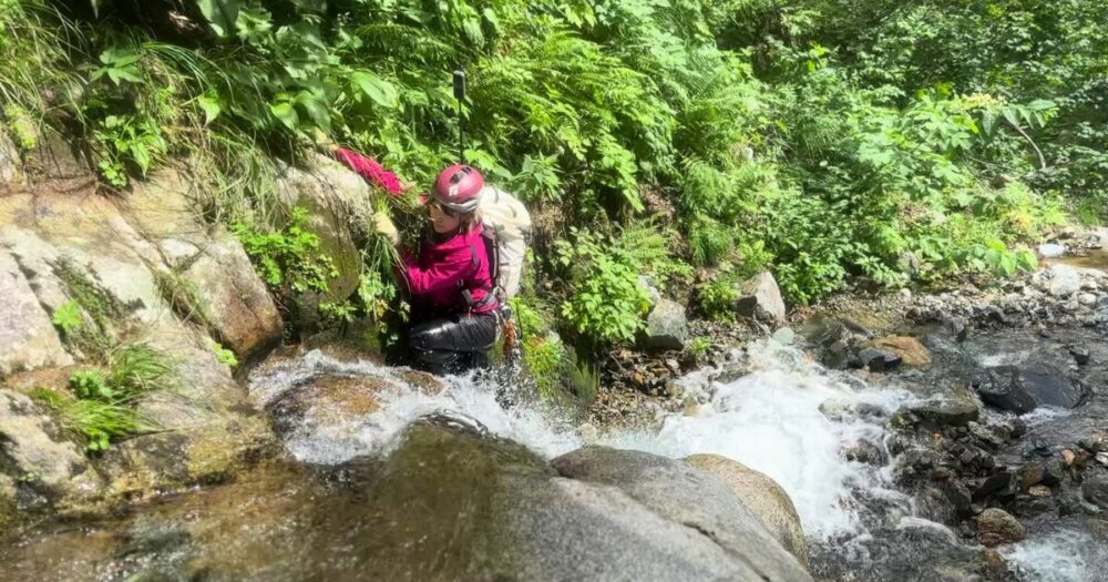 鮮やかなブルーとオレンジに魅せられる沢!登攀要素はほぼ無いが、美しく迫力ある... -