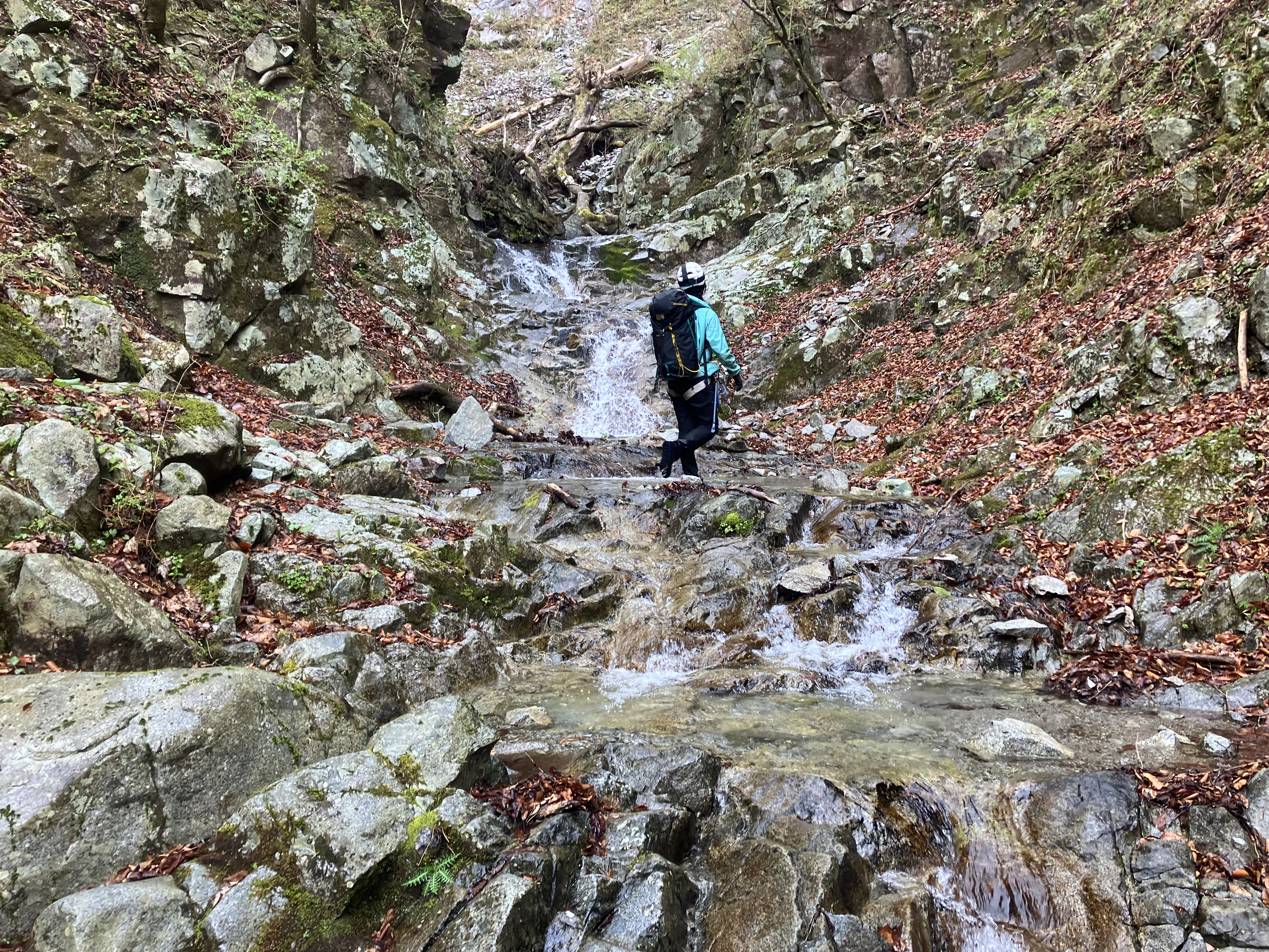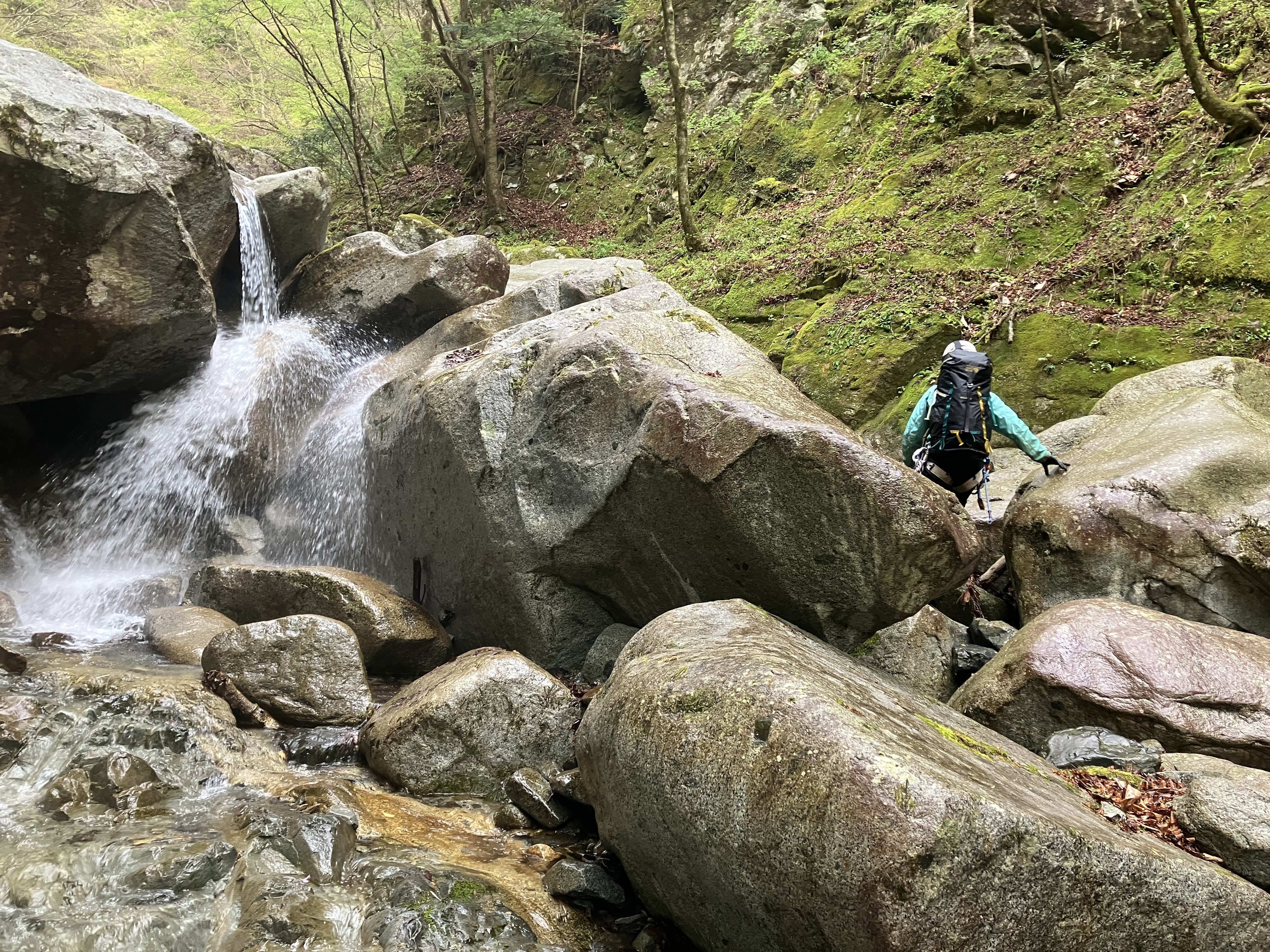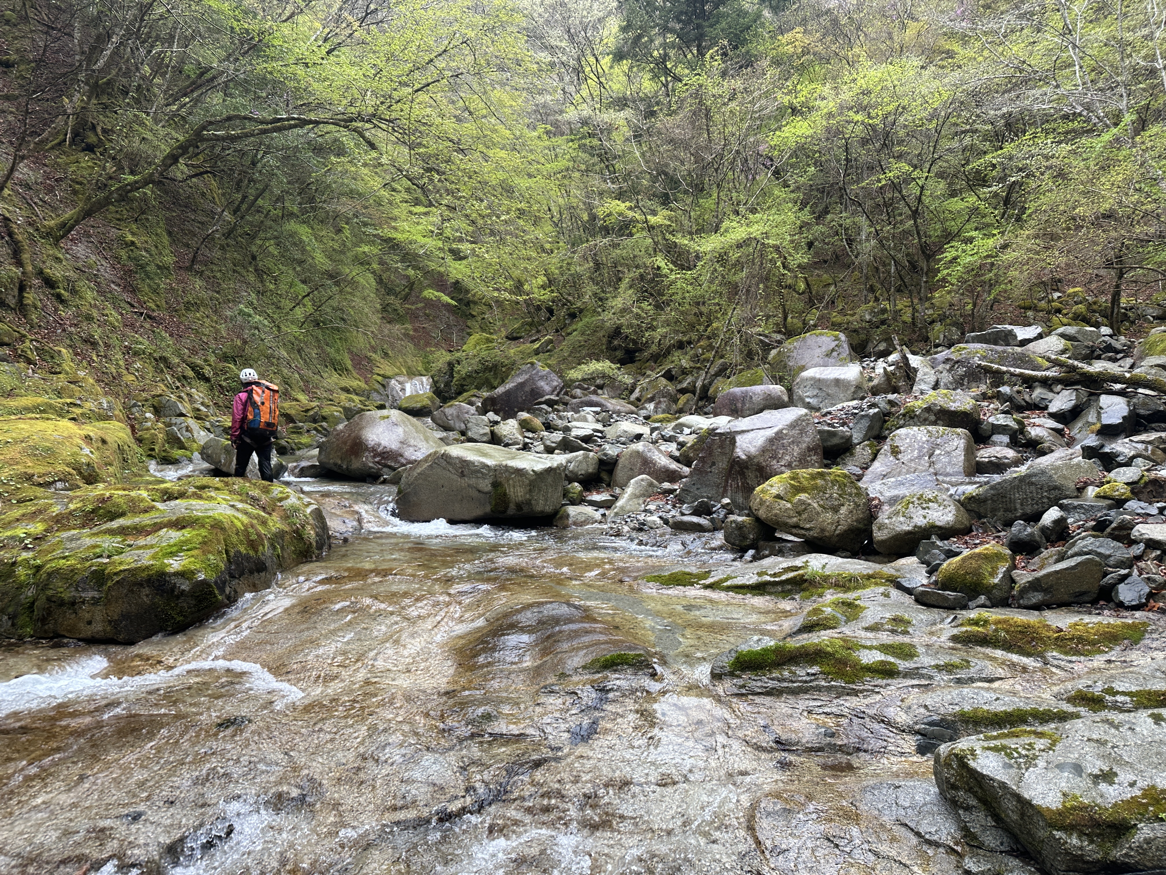 しばらく左岸の巻き道を行き、行き詰った所で沢に下りた。