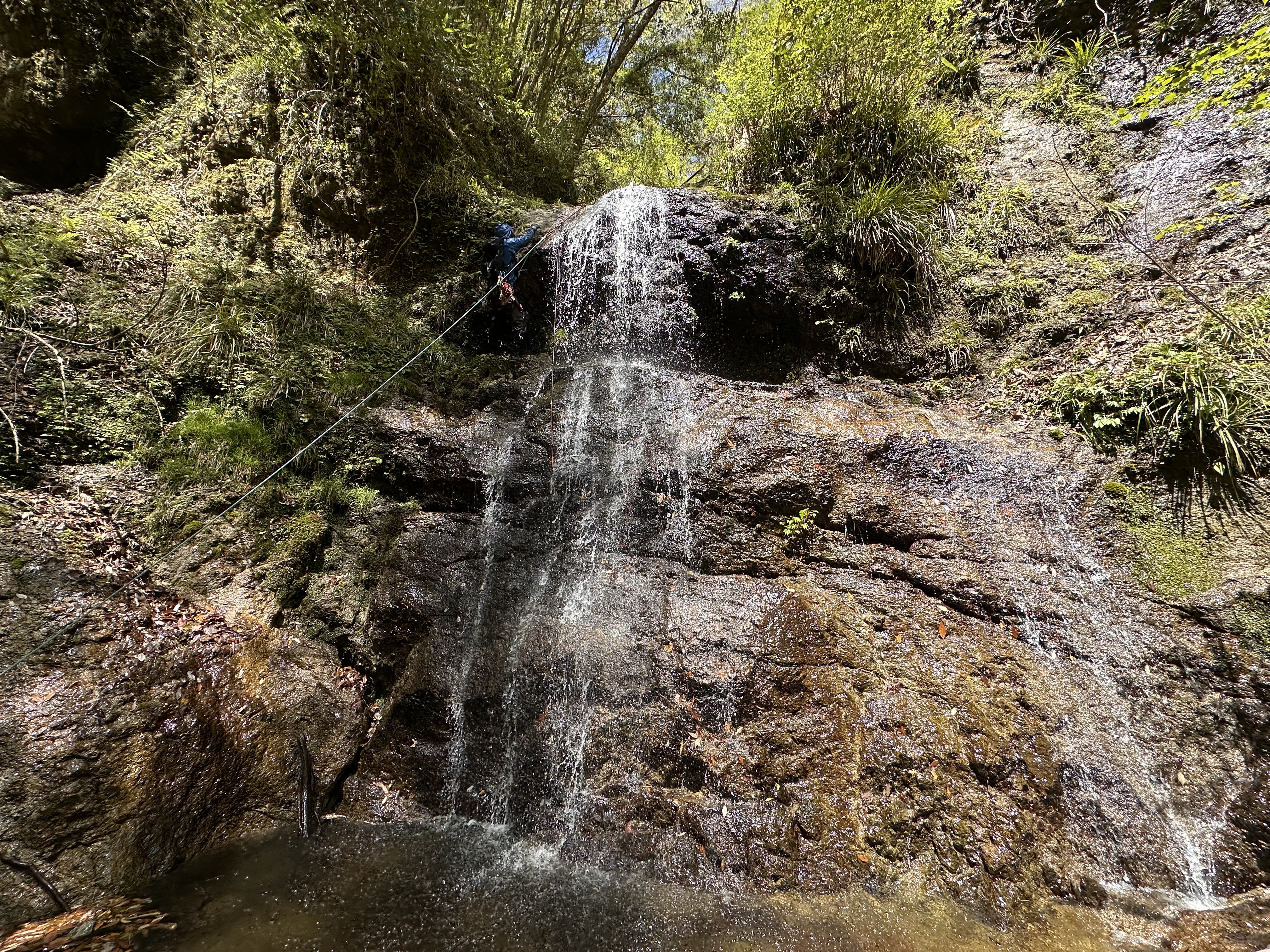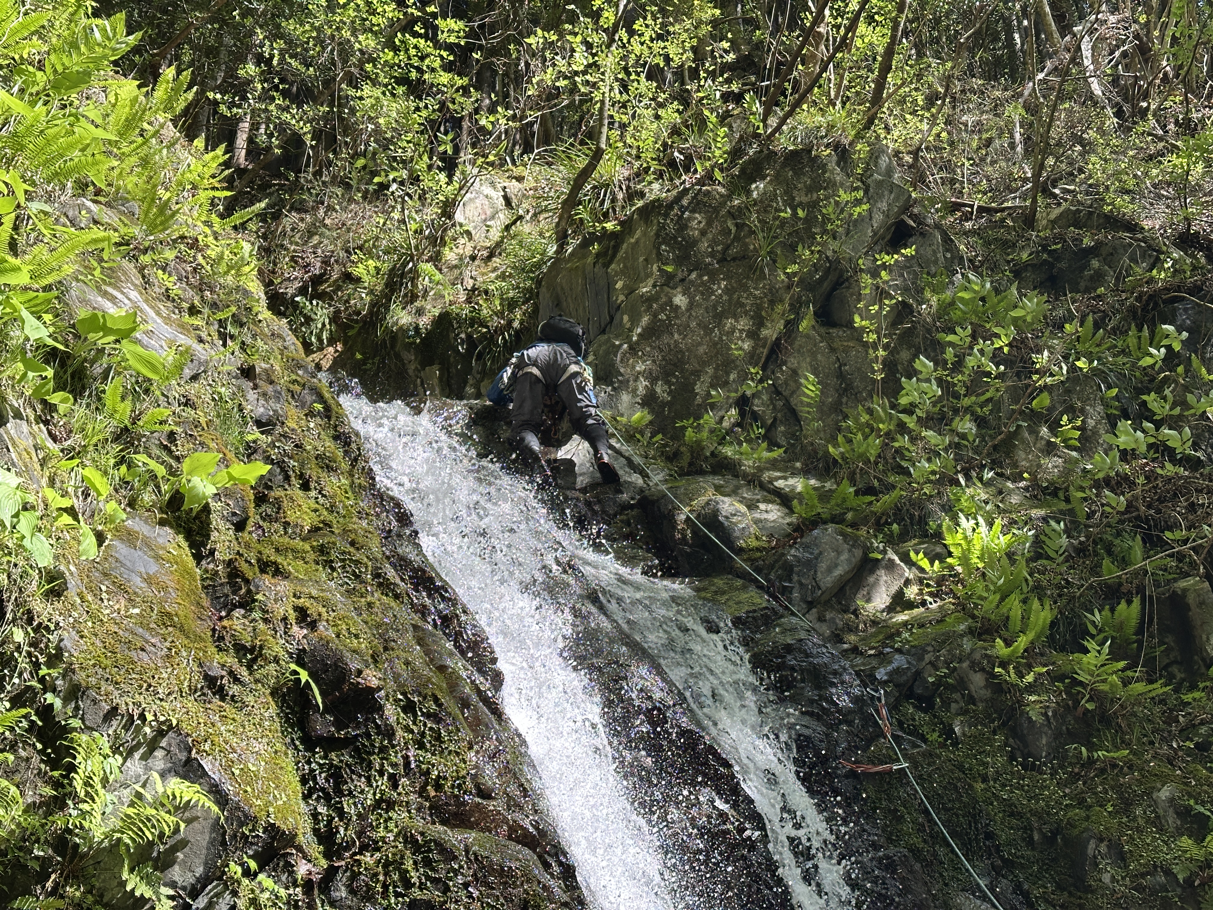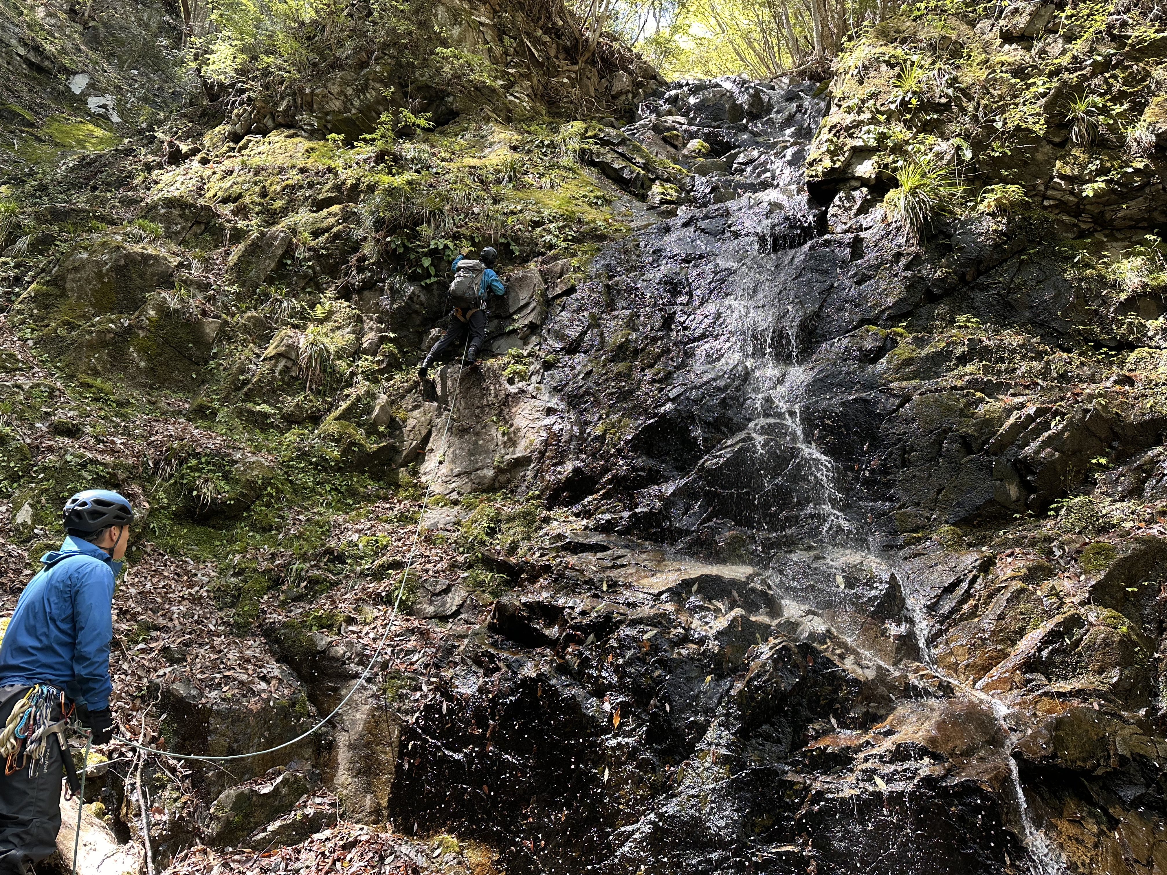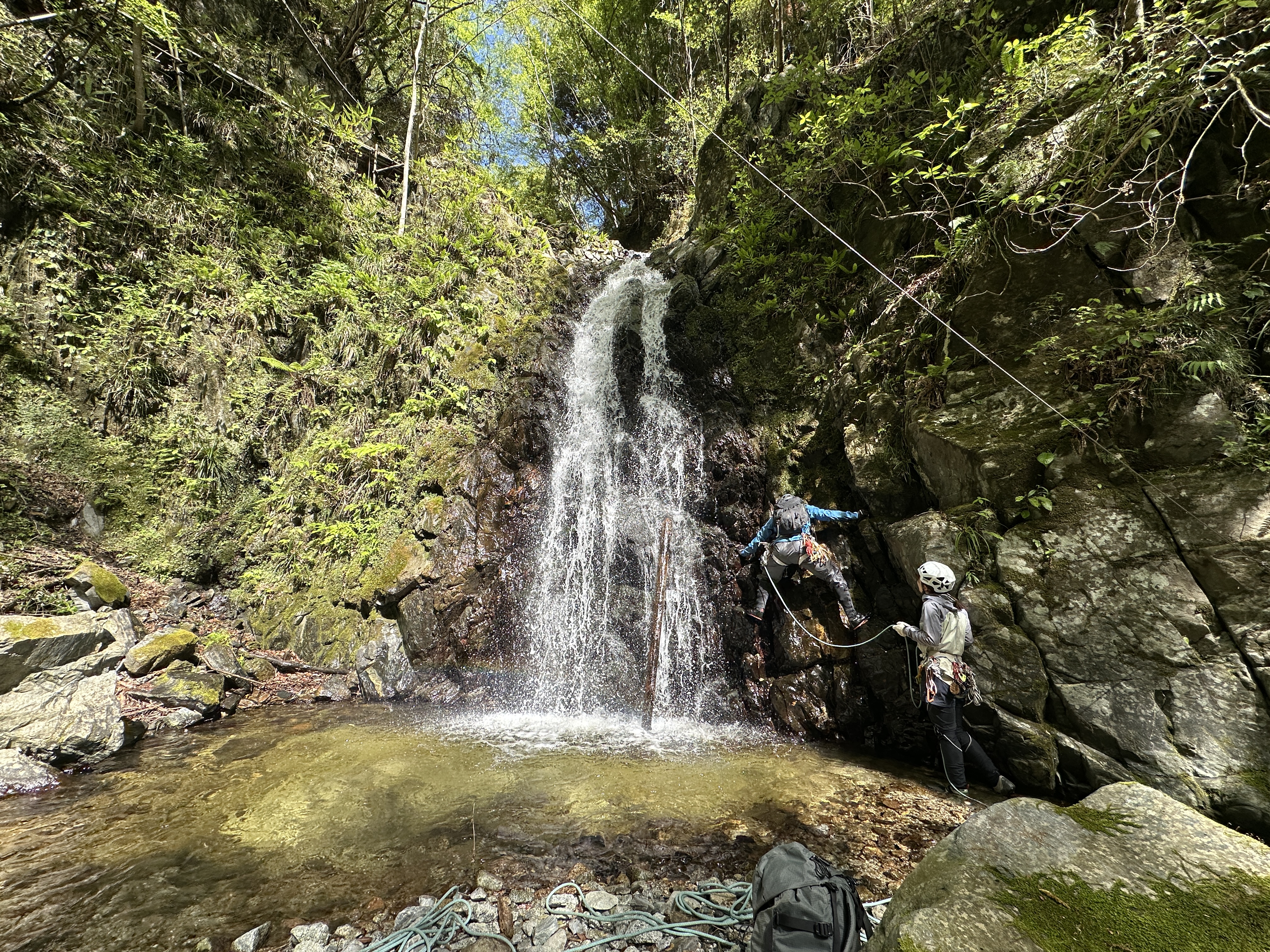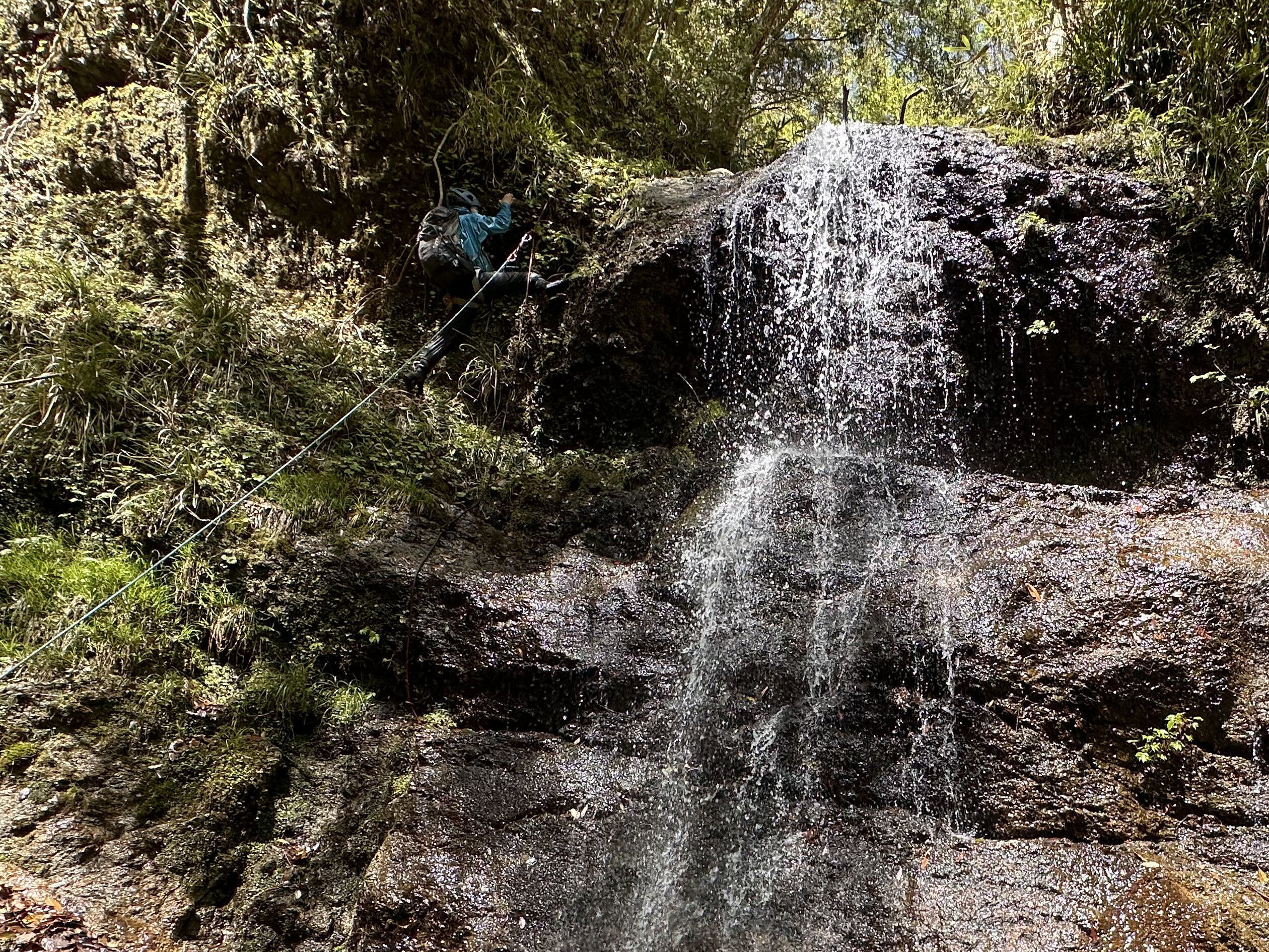 3段25m滝はsoyoちゃんリード。1段目を水流左から登り、そこからは右上。